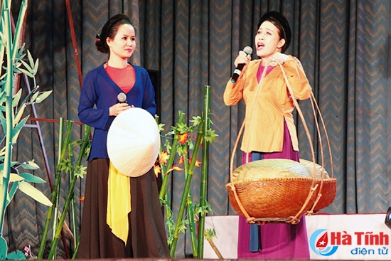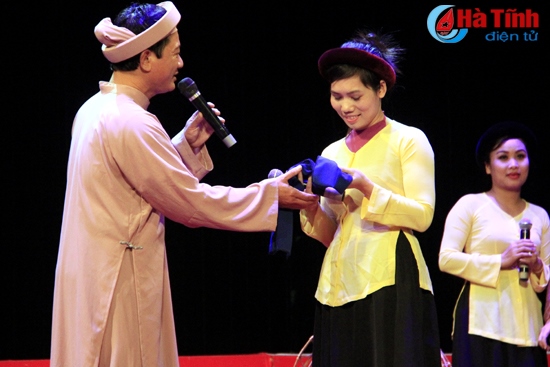 Một tiết mục ví, giặm do các nghệ sỹ Nhà hát Nghệ thuật truyền thống Hà Tĩnh biểu diễn. Ảnh: Tuệ Mẫn