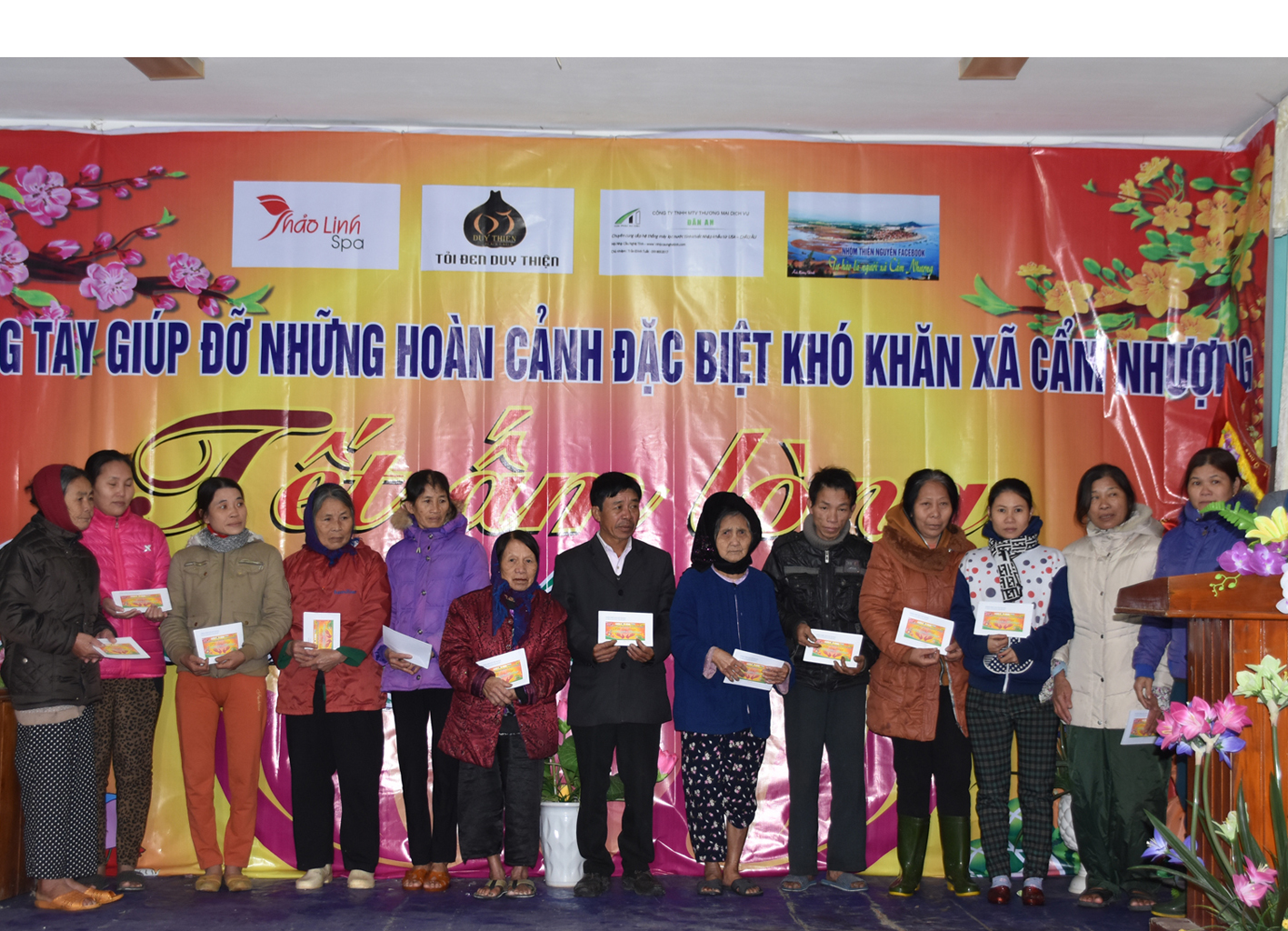 Nhóm thiện nguyện FB “Tự hào là người con Cẩm Nhượng” do một số con em xã Cẩm Nhượng lập ra, trong thời gian qua đã kêu gọi cộng đồng con em xã Cẩm Nhượng ở mọi miền tổ quốc quyên góp được 72 triệu đồng để tặng quà tết cho người nghèo thuộc xã Cẩm Nhượng. Đại diện nhóm thiện nguyện đã về tại xã Cẩm Nhượng trực tiếp trao 92 suất quà cho các hộ gia đình nghèo ở xã. Mỗi suất quà trị giá từ 300 đến 500 ngàn đồng và 25 kg gạo.