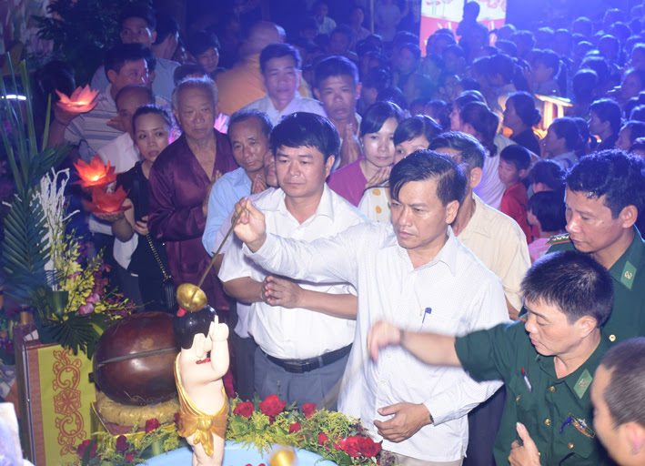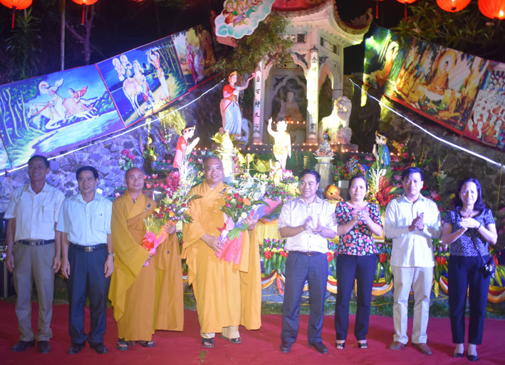 Dự lễ có đồng chí Hà Văn Bình – Phó bí thư thường trực huyện ủy; đồng chí Phạm Đăng Nhật – Phó bí thư huyện ủy – Chủ tịch UBND huyện; đồng chí Nguyễn Thanh Long – UV BTV, Trưởng ban dân vận huyện ủy; đồng chí Phạm Văn Thắng – UV BTV, Phó chủ tịch thường trực HĐND huyện; đông đảo các Tăng ni, Phật tử đã về dự lễ.
