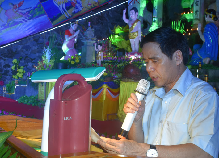 Đồng chí Phó bí thư thường trực huyện ủy cũng mong muốn các Tăng ni, Phật tử gương mẩu tuyên truyền, vận động gia đình, người thân thực hiện các phong trào thi đua yêu nước, đảm bảo an ninh trật tự, an toàn xã hội, xây dựng đời sống văn hóa; góp phần xây dựng quê hương ngày càng giàu mạnh; tích cực tham gia bầu cử đại biểu Quốc Hội và HĐND các cấp nhiệm kỳ 2016 – 2021…
