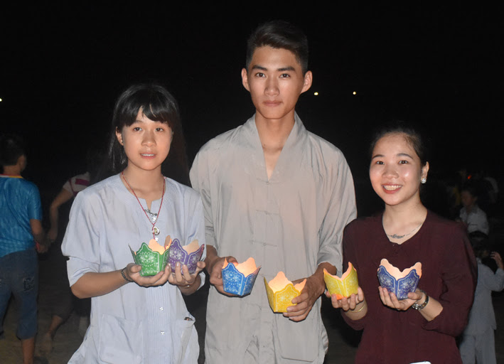 Sau lễ tắm Phật và tụng kinh, hơn 3000 ngọn đèn hoa đăng đã được các Tăng ni, Phật tử thắp sáng và thả xuống bãi biển Thiên Cầm cầu nguyện cho đất nước được hòa bình, chúng sanh an lạc; nhân dân ấm no hạnh phúc; cầu mong cho mưa thuận gió hòa, biển trời an bình, sạch, đẹp.