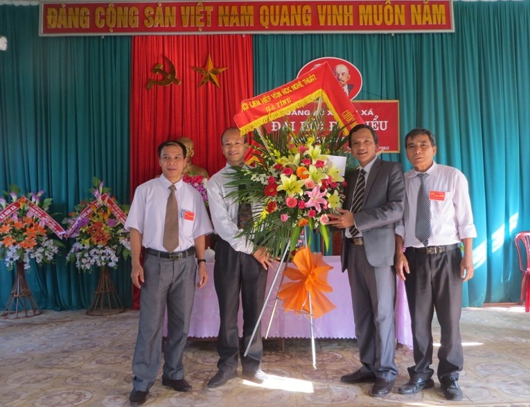 Nhà văn Phan Trung Hiếu thay mặt đơn vị đỡ đầu XD NTM tặng hoa chúc mừng đại hội