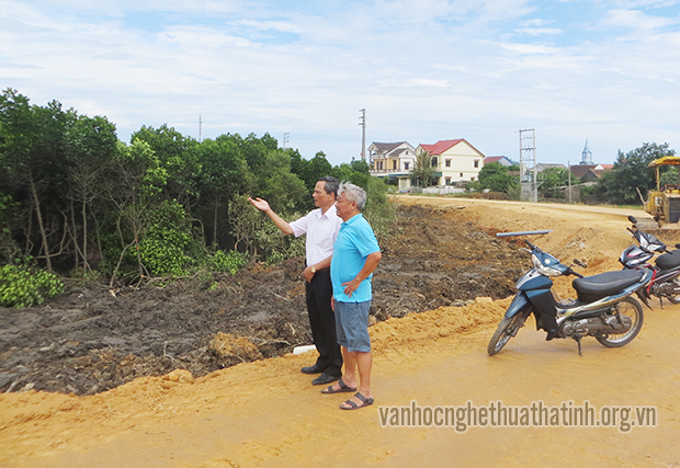 Tác giả cùng ông Nguyễn Hữu Diệp trước khu vực bãi sú, cũng là nơi đang có ý định xây dựng công trình tưởng niệm những người đã hi sinh