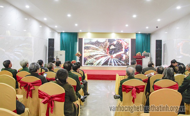 Các đại biểu, khách mời và thành viên CLB cùng xem clip giới thiệu các tác phẩm tiêu biểu của những thành viên là Cựu chiến binh