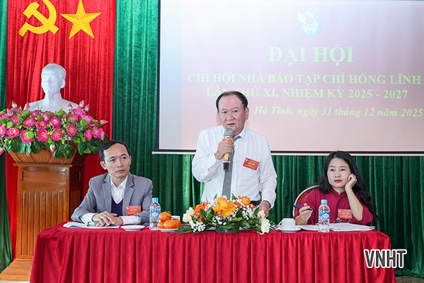Phát biểu chỉ đạo tại Đại hội, đồng chí Nguyễn Xuân Hải – Chủ tịch Hội Nhà báo tỉnh ghi nhận và biểu dương những nỗ lực vượt bậc của Chi hội trong nhiệm kỳ qua. Đánh giá cao các ý kiến tham luận, đồng chí nhấn mạnh: “Dù ngắn gọn nhưng các đóng góp đều rất cụ thể và bám sát thực tiễn”. Đồng chí đề nghị mỗi hội viên cần chủ động rà soát lại các mục tiêu đã đề ra, đồng thời nâng cao tinh thần trách nhiệm cá nhân để sát cánh cùng Ban Thư ký thực hiện thắng lợi nghị quyết Đại hội. Đây là dịp quan trọng để nhìn nhận thẳng thắn những ưu, khuyết điểm, từ đó rút ra bài học kinh nghiệm quý báu. Qua đó, giúp Chi hội Nhà báo Tạp chí Hồng Lĩnh phát huy hơn nữa vai trò trong dòng chảy báo chí tỉnh nhà, góp phần xây dựng Hội Nhà báo tỉnh ngày càng vững mạnh.
