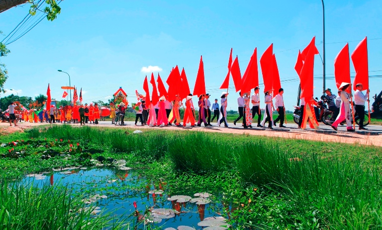 Sau khi đón nhận tại Hội trường, dòng họ Ngô Trảo Nha đã tổ chức lễ rước trang trọng Bằng chứng nhận kỷ lục về nhà thờ họ.