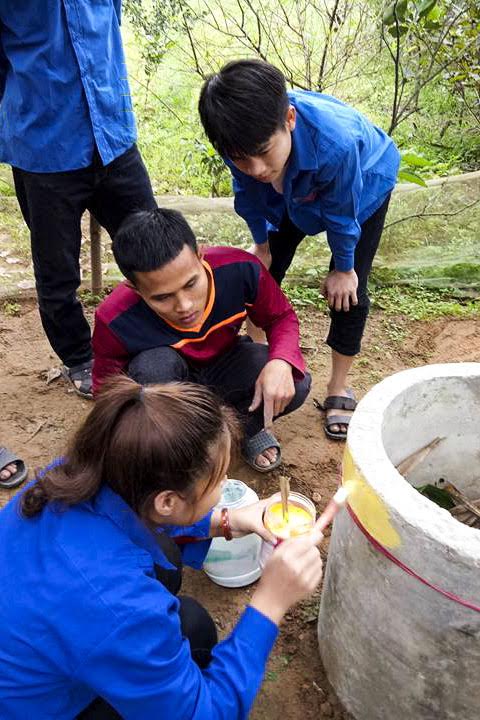 Ngoài ra, đoàn xã cũng mua ống bê tông dạng khuôn giếng, huy động đoàn viên thanh niên cố định thùng rác bằng cách góp đá dăm, cát và xi măng trộn hồ sau khi thống nhất với hộ gia đình. Để đạt hiệu quả tuyên truyền cao nhất, Đoàn xã đã dùng sơn ve tô màu cho các thùng rác, gắn các biển phân loại, biển tên tại hộ gia đình, quét nép, làm mẫu và hướng dẫn cho các hộ gia đình hiểu rõ.