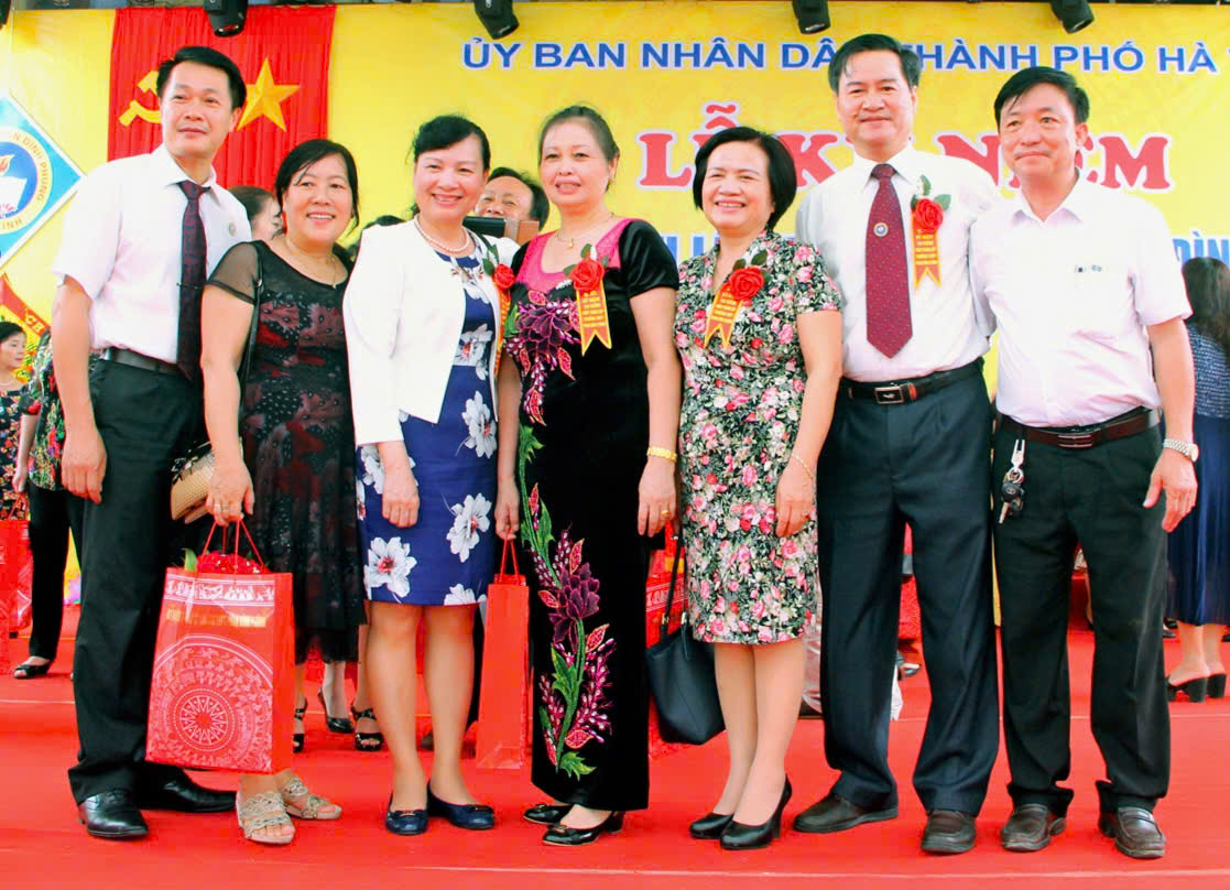 GS. Nguyễn Văn Công (ngoài cùng bên trái) tại lễ kỉ niệm 70 năm Trường THPT Phan Đình Phùng