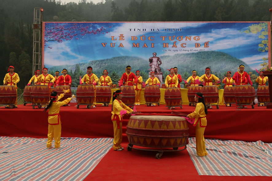 Màn trống hội khai mạc lễ đúc tượng và khánh thành đền thờ vua Mai Hắc Đế.