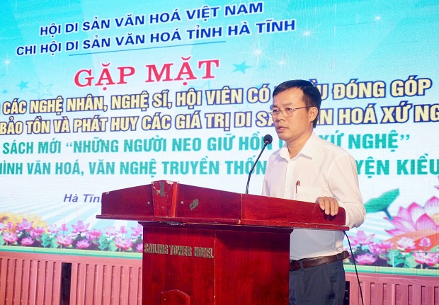 Mở đầu buổi lễ, TS. Nguyễn Tùng Lĩnh – Chủ tịch Chi hội DSVH Hà Tĩnh, Phó Chủ tịch Hội Liên hiệp VHNT Hà Tĩnh phát biểu chào mừng nhân Ngày Di sản Văn hóa Việt Nam và khai mạc buổi lễ