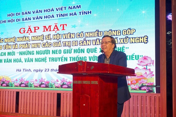 Chiều 23/11/2025, nhân kỷ niệm 20 năm Ngày Di sản văn hóa Việt Nam (23/11/2005 – 23/11/2025), Chi hội Di sản văn hóa Hà Tĩnh đã tổ chức buổi gặp mặt trang trọng nhằm tri ân các nghệ sĩ, nghệ nhân, hội viên đã có nhiều đóng góp thiết thực vào sự nghiệp bảo tồn và phát huy các giá trị di sản văn hóa Xứ Nghệ. Tham dự chương trình có các đồng chí nguyên lãnh đạo tỉnh, lãnh đạo Sở Văn hóa – Thể thao & Du lịch cùng đông đảo nhà nghiên cứu, nghệ sĩ, nghệ nhân và hội viên hội Di sản văn hóa Hà Tĩnh.