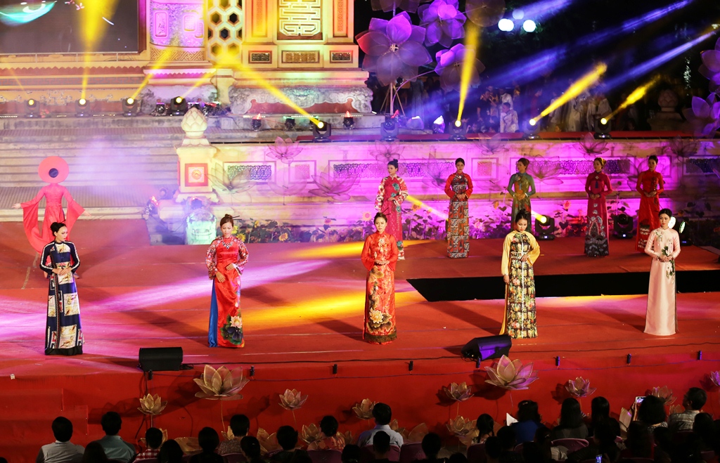 Tối cùng ngày, chương trình trình diễn áo dài Festival Huế 2018 với chủ đề “Huế vàng son” diễn ra tại sân khấu Bia Quốc Học đã để lại nhiều cảm xúc trong lòng người dân và du khách.