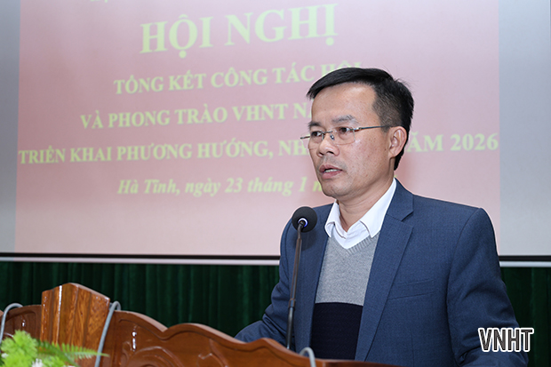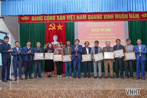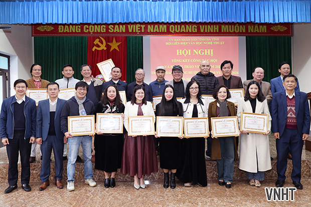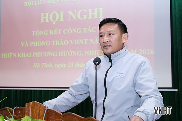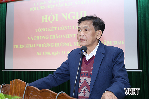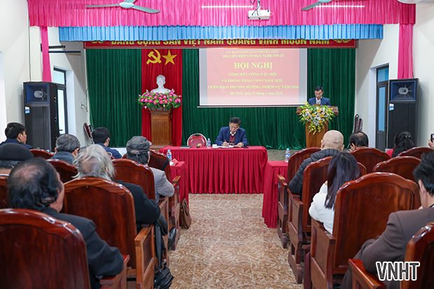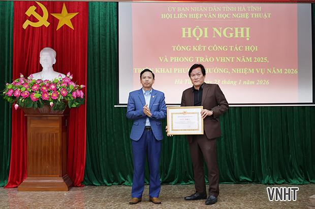 Chiều ngày 23/1/2026, Hội Liên hiệp Văn học Nghệ thuật (VHNT) Hà Tĩnh tổ chức hội nghị tổng kết công tác năm 2025 và triển khai nhiệm vụ năm 2026. Tham dự hội nghị có đại diện lãnh đạo Ban Tuyên giáo và Dân vận Tỉnh ủy; Sở Văn hóa thể thao và Du lịch; Ủy ban Mặt trận Tổ quốc tỉnh; các đồng chí Ủy viên Ban Thường vụ, Ban Chấp hành, Ban Kiểm tra Hội Liên hiệp VHNT Hà Tĩnh khóa X; các Chi hội trưởng, Chi hội phó các chi hội VHNT cơ sở cùng các tập thể và cá nhân có thành tích xuất sắc được Hội khen thưởng.