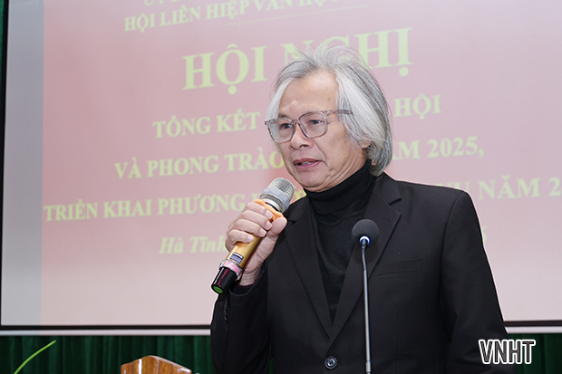 Phát biểu tại hội nghị, Trưởng phòng Khoa giáo, Văn hóa - Văn nghệ, Ban Tuyên giáo và Dân vận Tỉnh ủy Hà Tĩnh Trần Đình Hưng ghi nhận và biểu dương những thành tích xuất sắc của Hội Liên hiệp VHNT cùng đội ngũ văn nghệ sĩ trong năm qua. Ông nhấn mạnh Hội cần tiếp tục phát huy vai trò là trung tâm quy tụ, tạo cảm hứng để các nghệ sĩ sáng tạo nên những tác phẩm mới mang tầm vóc của kỷ nguyên mới, đồng thời chú trọng tăng cường công tác quảng bá và tuyên truyền tác phẩm đến công chúng. Đặc biệt, yêu cầu Hội tập trung chuẩn bị chu đáo về mọi mặt để tổ chức thành công Đại hội Hội lần thứ XI, đảm bảo đây thực sự là ngày hội lớn, đánh dấu bước phát triển mới của văn nghệ sĩ tỉnh nhà.