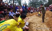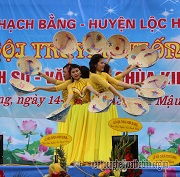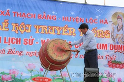Phó Chủ tịch UBND huyên Lộc Hà - Lê Quang Huệ đánh trống khai hội chùa Kim Dung năm 2018