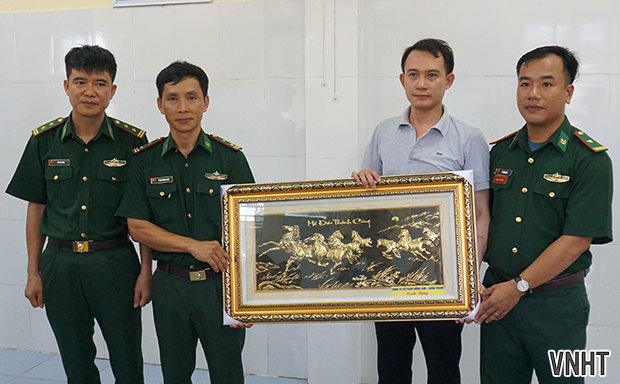 Đại diện Công ty Hồng Lam Xuân Thành tặng quà cho Đồn biên phòng Phú Gia