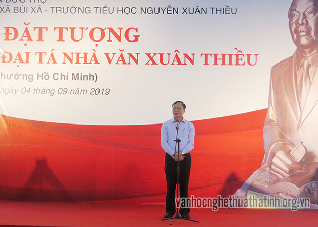 Phát biểu tại buổi lễ, Bí thư Huyện ủy Đức Thọ Võ Công Hàm cho biết, cuộc đời và sự nghiệp của cố nhà văn, nhà thơ Nguyễn Xuân Thiều là tấm gương sáng để các thế hệ noi theo với lòng thành kính sâu sắc. Ông gửi lời cảm ơn sâu sắc tới sự quan tâm của Hội nhà văn Việt Nam, Tạp chí Văn nghệ quân đội, các nhà văn, nhà thơ và mong rằng gia đình của cố nhà văn Nguyễn Xuân Thiều và các đại biểu sẽ tiếp tục đóng góp giúp đỡ nhà trường và địa phương.
