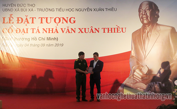 Sáng ngày 4/9/2019, xã Bùi Xá, huyện Đức Thọ tổ chức buổi lễ khánh thành đặt tượng đồng cố nhà văn quân đội Nguyễn Xuân Thiều nguyên Phó Tổng biên tập tạp chí Văn nghệ Quân đội (1977 - 1987) ngay tại khuôn viên Trường Tiểu học Nguyễn Xuân Thiều thuộc Bùi Xá, huyện Đức Thọ, Hà Tĩnh.