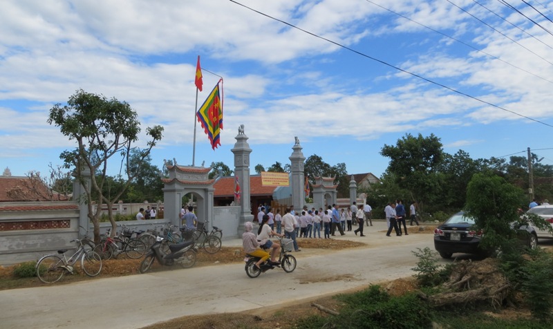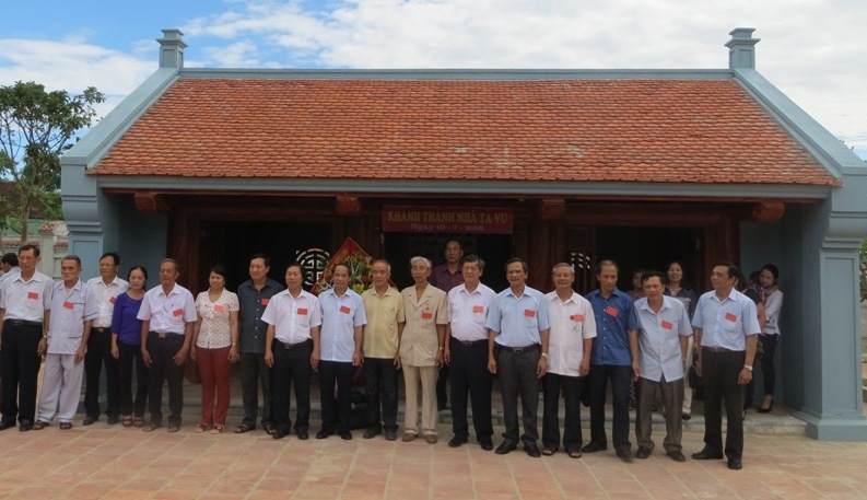 Các đại biểu chụp ảnh lưu niệm trước Nhà tả vu- công trình được Hội đồng Phan tộc Hà Tĩnh kêu gọi con em trong dòng tộc xây dựng nằm trong Dự án phục hồi Đền thờ Phan Kính