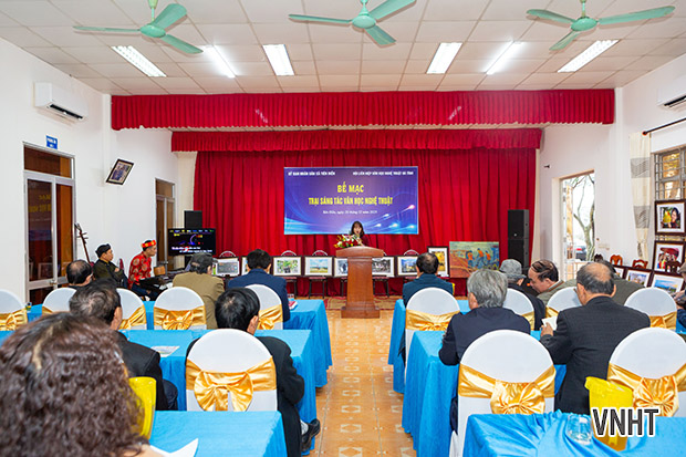 Trong không khí ấm áp của buổi lễ bế mạc, Nhà thơ Trần Nam Phong – Chủ tịch Hội, Trưởng trại sáng tác; NSNA Trần Hướng – Phó Chủ tịch Hội và Nhà văn Trần Quỳnh Nga đã trao tặng những phần quà ý nghĩa cho các ca sĩ, ca nương và các thành viên trong kép đàn Văn Đài.