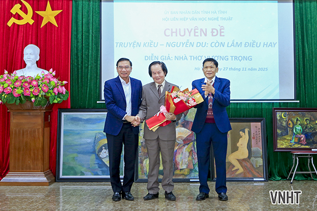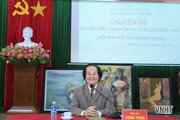 Nhân dịp kỷ niệm 260 năm năm sinh Đại thi hào Nguyễn Du (1765 -2025), Hội Liên hiệp Văn học Nghệ thuật Hà Tĩnh tổ chức buổi nói chuyện chuyên đề “Truyện Kiều – Nguyễn Du: Còn lắm điều hay” của diễn giả - nhà thơ Vương Trọng.