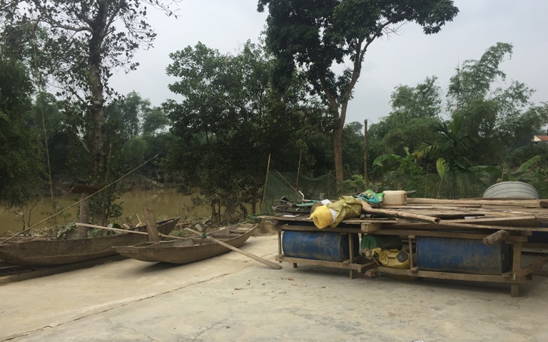 Lối vào nhà dân không thể phân biệt được đâu là ngõ. Bờ rào tre nứa đã theo con nước đi xa. Vài tấm lá cọ được bà con trải tạm để tìm ra lối bước. Hình ảnh đầu tiên mà chúng tôi bắt gặp là bè mảng ngổn ngang trước sân chưa nhà ai tháo dọn. Mấy đứa trẻ đang leo trèo thấy có khách đến nhà vội chạy vào trong. Hoa - cô học trò của tôi năm nào tay ôm đứa con thơ lễ phép chào cô với vẻ mặt sung sướng nhưng không dấu nổi vẻ thất thần mệt mỏi vì phải lo chống đỡ bao khó khăn qua 2 đợt lũ. Tôi xúc động hỏi: