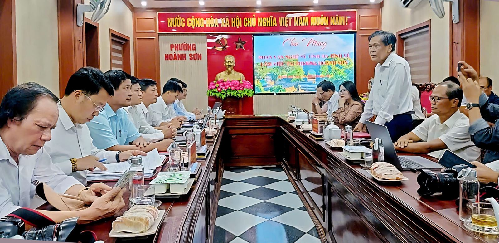Đoàn công tác của giới văn nghệ sỹ Hà Tĩnh về làm việc với lãnh đạo phường Hoành Sơn, tỉnh Hà Tĩnh nhằm trao đổi, khảo sát thực tế phục vụ sáng tác, tuyên truyền về quá trình xây dựng và phát triển đô thị mới vùng Nam Hà Tĩnh.