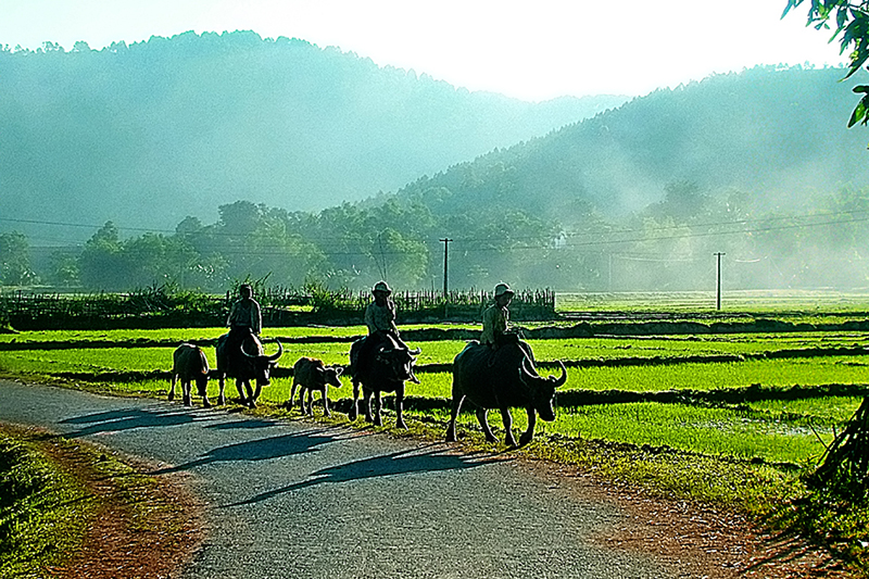 Tôi đi chậm qua con đường đất dẫn ra cánh đồng cuối làng. Đường vẫn nhỏ, nhưng lũy tre hai bên đã cao hơn, bóng đổ chập chờn trong sương. Con trâu già thong thả sau khi được thả khỏi sợi dây ràng đang đứng nhai cỏ ven bờ, tiếng mõ lốc cốc gợi tôi nhớ tiếng đàn trâu nhà mình năm ấy, nhớ cả buổi trưa trốn học trèo lên lưng trâu thả diều. Tiếng sáo ngày ấy tưởng đã tan theo gió, nay như vẫn còn vang đâu đó giữa đồng không. Tôi cúi xuống, nhặt một hòn sỏi nhỏ ven đường vo viên trong tay, lòng bỗng dâng lên cảm giác thân quen. Tất cả như vừa thức dậy sau một giấc ngủ dài của hoài niệm, của hồi ức, giấc ngủ của yêu thương tưởng chừng đã phai phôi như sợi nắng lúc chạng vạng.