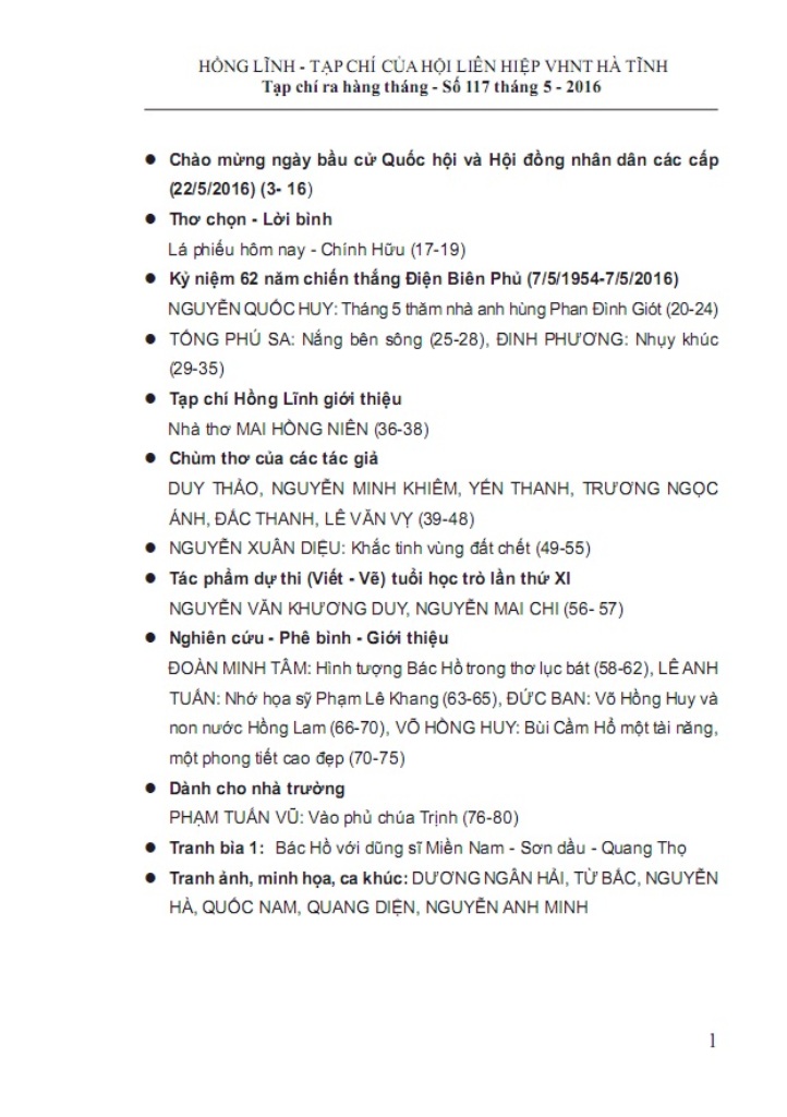 Tạp chí Hồng Lĩnh số 117, phát hành vào đầu tháng 5 trân trọng giới thiệu.