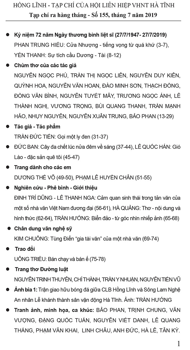 Tạp chí Hồng Lĩnh số 155 phát hành tháng 7/2019 trân trọng giới thiệu.