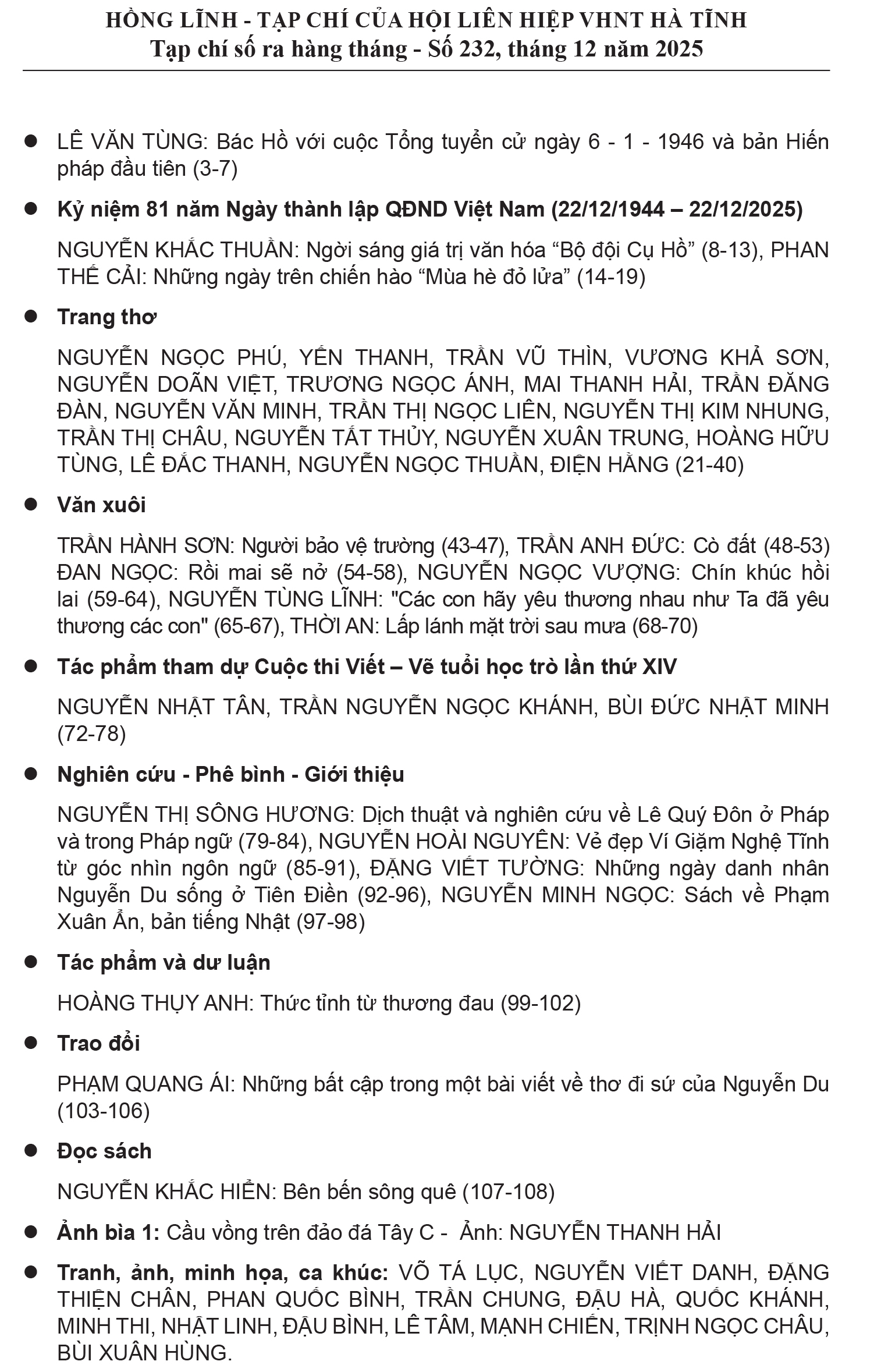 Tạp chí Hồng Lĩnh số 232 phát hành tháng 12/2025 trân trọng giới thiệu