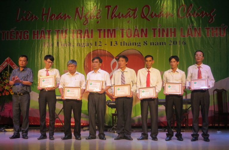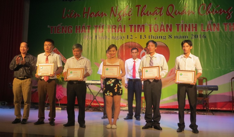 Đêm 13/8/2016, tại Nhà Văn hóa thành phố Hà Tĩnh, Liên hoan nghệ thuật quần chúng “Tiếng hát từ trái tim” toàn tỉnh lần thứ V do Hội người mù phối hợp với Sở VHTT&DL Hà Tĩnh đã tổ chức công diễn và làm lễ trao giải thưởng.