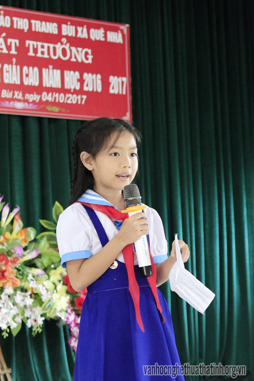 Đại diện cho Ban quản lý Quỹ "Bùi Xá quê nhà", nhà văn Phan Trung Hiếu – Chủ tịch Hội liên hiệp văn học Nghệ thuật Hà Tĩnh gửi lời chúc mừng đến các em học sinh nhân ngày Tết Thiếu nhi.
