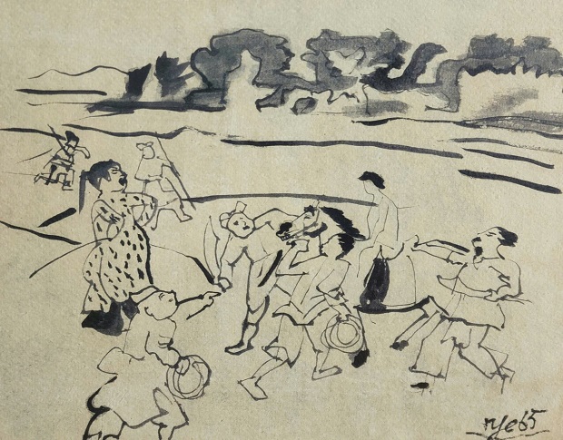 Họa sĩ Lương Xuân Đoàn cho biết danh họa Nguyễn Tư Nghiêm thực hiện bộ tranh thường thả màu trước rồi mới thả nét.