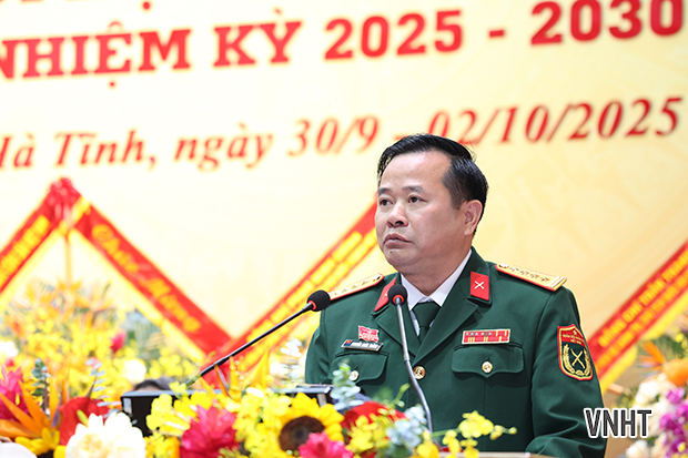 Đại biểu Nguyễn Xuân Thắng – Chỉ huy trưởng Bộ CHQS tỉnh Hà Tĩnh trình bày tham luận: “Kết quả thực hiện nhiệm vụ quân sự, quốc phòng địa phương, công tác biên phòng gắn với công tác đối ngoại, hợp tác quốc tế, góp phần giữ vững ổn định chính trị, thúc đẩy phát triển kinh tế - xã hội và các chủ trương, giải pháp trong nhiệm kỳ tới”