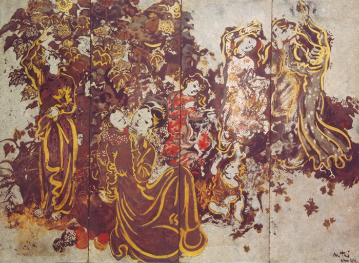 Họa sĩ Nguyễn Gia Trí (1908 - 1993), quê xã Trường Yên, huyện Chương Mỹ, tỉnh Hà Tây. Ông tốt nghiệp trường Cao đẳng Mỹ thuật Đông Dương năm 1936, sau đó vào sống tại Sài Gòn. Ông là người sống khép kín, thầm lặng chỉ tập trung trong sáng tác mỹ thuật. Bằng sự yêu nghề, say mê sáng tác, yêu thích chất liệu sơn mài truyền thống, ông đã nghiên cứu, thể nghiệm biến những chất liệu sơn ta để thực hiện mỹ nghệ phẩm hay tranh trang trí thành phương tiện biểu đạt nghệ thuật mới độc đáo.
