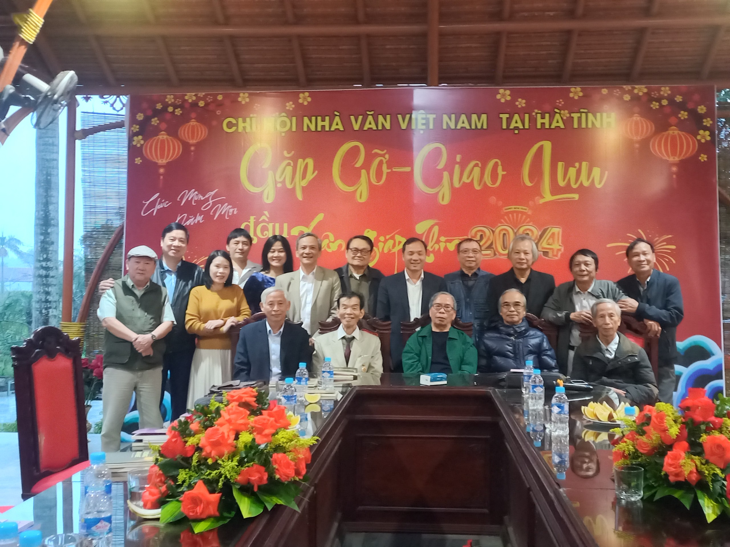 Ngày 13.1.2024, Chi hội Nhà văn Việt Nam tại Hà Tĩnh đã tổ chức cuộc gặp mặt hội viên để tổng kết các hoạt động của năm 2023 và đón chào năm mới 2024. Đến dự có Đồng chí Hoàng Trung Dũng, Ủy viên trung ương Đảng, Bí thư tỉnh ủy Hà Tĩnh; Đồng chí Nguyễn Xuân Thập, Giám đốc Sở VHTT&DL Hà Tĩnh; NSNA Trần Hướng, phó Chủ tịch Hội VHNT Hà Tĩnh, đại diện lãnh đạo Hội Kiều học Hà Tĩnh cùng 16 nhà văn Việt Nam tại Hà Tĩnh.