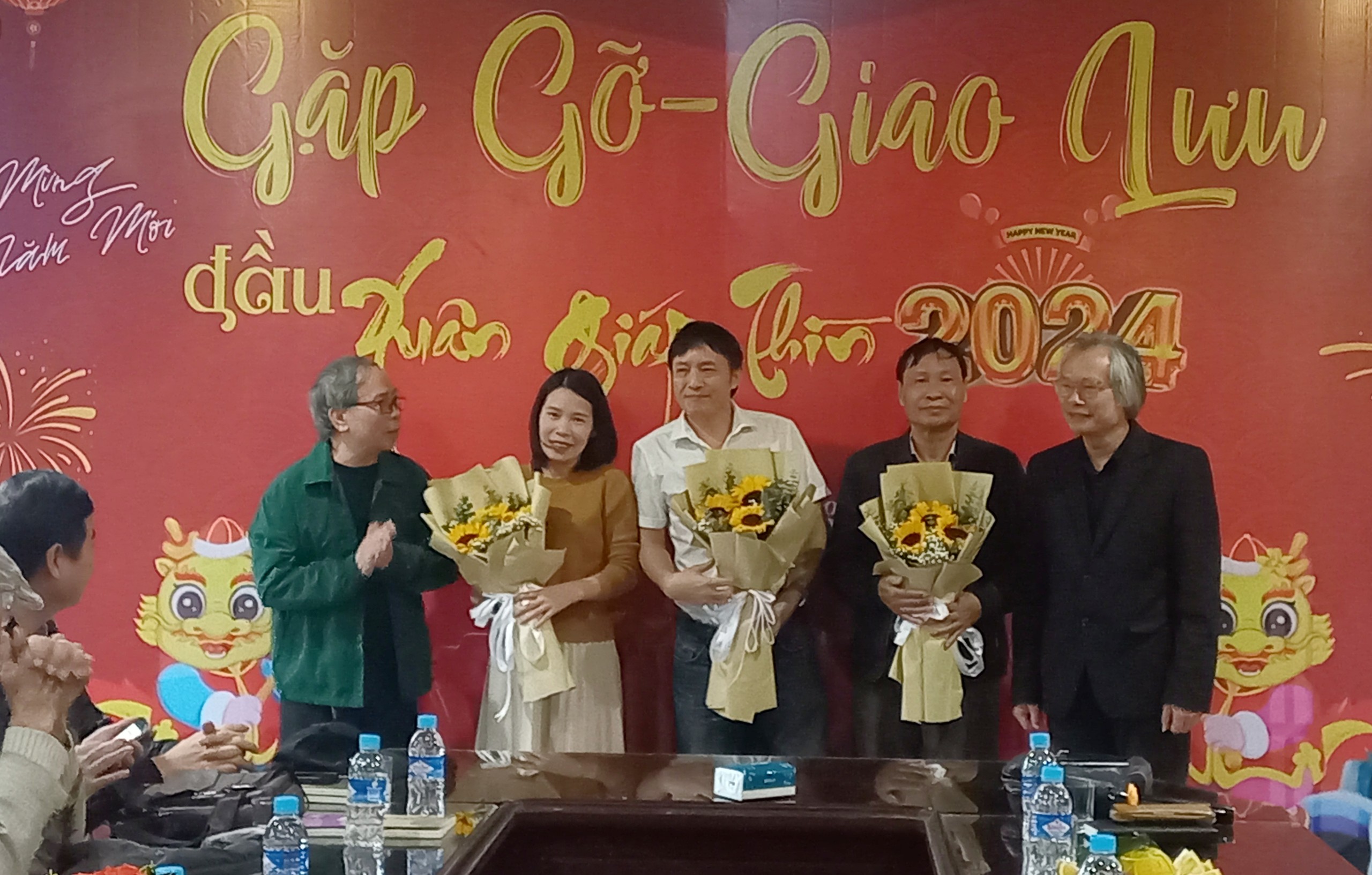 Chi hội Nhà văn Việt Nam tại Hà Tĩnh tặng hoa chúc mừng các tân hội viên