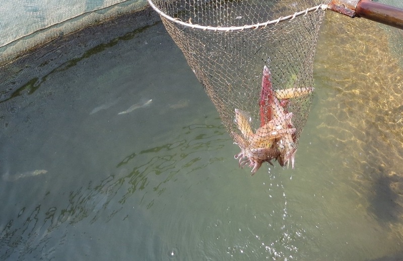 Trải nghiệm cảm giác thích thú khi dùng vợt vớt mực đang tung tăng bơi lội ở lưới lồng của các nhà hàng