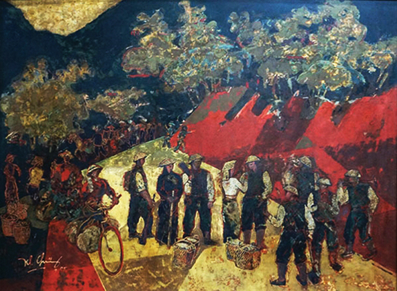 Đường lên Điện Biên - (Sơn mài) - Tranh: Trần Khánh Chương