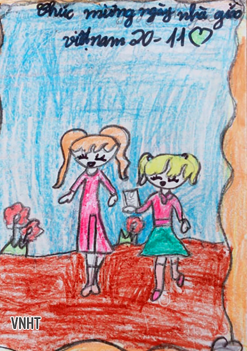 Văn nghệ Hà Tĩnh giới thiệu chùm tranh đầy màu sắc của các em lớp 2 trường Hội nhập Quốc tế iSchool Hà Tĩnh vẽ về đề tài cô giáo.