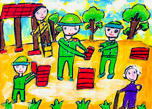 Bộ đội giúp dân - Phạm Hồng Thục Uyên, Lớp 3A, Trường Tiểu học Thạch Khê, Thạch Hà