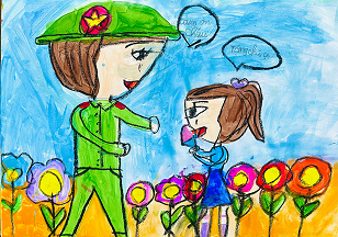 Bông hoa tặng chú bộ đội - Phạm Bảo Hân, Lớp 2A, Trường Tiểu học Bắc Hà, TP Hà Tĩnh