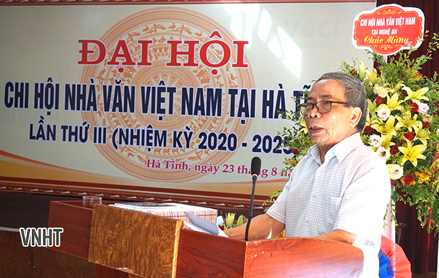 Trong hai ngày 22-23/8/2020, Chi hội nhà văn Việt Nam tại Hà Tĩnh tổ chức Đại hội lần thứ III, nhiệm kỳ 2020- 2025. Tới tham dự có đồng chí Đặng Quốc Vinh - Phó Chủ tịch thường trực UBND tỉnh, đồng chí Trần Minh Phương - Phó Ban Tuyên giáo Tỉnh ủy, đại diện lãnh đạo Hội Liên hiệp VHNT tỉnh và một số các Chi hội VHNT