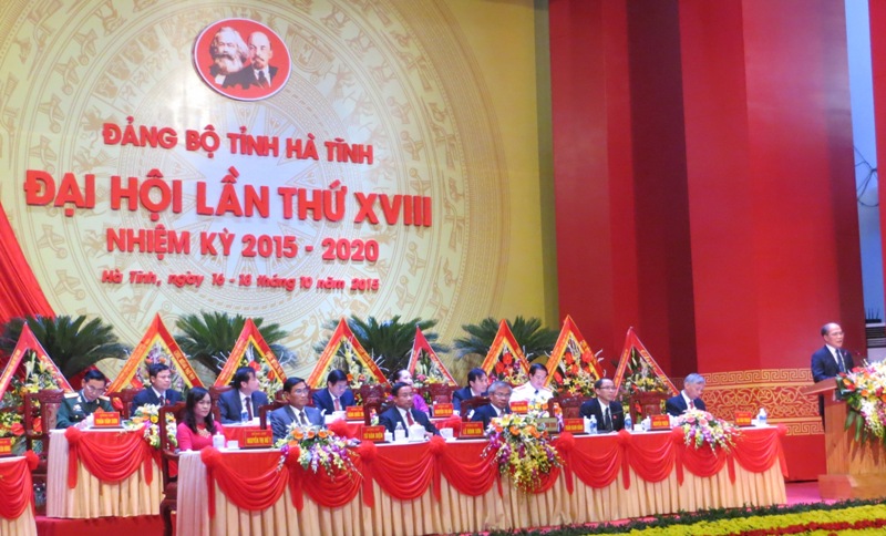 Sau phiên Đại hội nội bộ, sáng 17/10/2015, tại Trung tâm Văn hóa – Điện ảnh tỉnh, Đại hội đại biểu Đảng bộ tỉnh Hà Tĩnh lần thứ XVIII, nhiệm kỳ 2015 - 2020 long trọng khai mạc với sự tham gia của 348 đại biểu chính thức đại diện cho hơn 93.000 đảng viên trong toàn Đảng bộ và 350 đại biểu khách mời.
