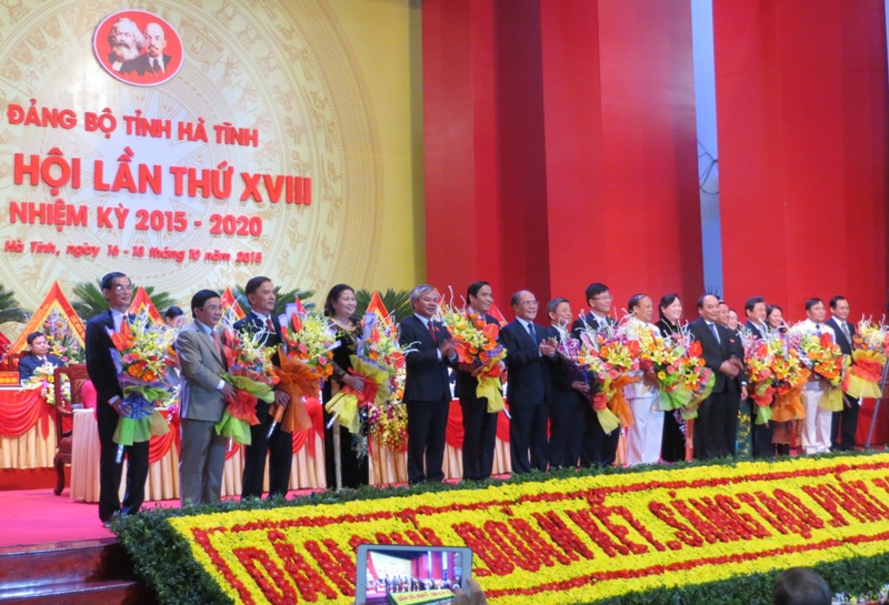 Buổi chiều ngày 17/10, Đại hội Đại biểu Đảng bộ tỉnh lần thứ XVIII tiến hành bầu ban chấp hành nhiệm kỳ 2015 – 2020. Đại biểu đại hội cũng đã nghe báo cáo danh sách giới thiệu nhân sự do BCH Đảng bộ tỉnh khóa XVII chuẩn bị. Sau phần ứng cử và đề cử tại hội trường, đại biểu đại hội đã biểu quyết thông qua số lượng và danh sách bầu cử gồm 61 đồng chí để bầu 55 đồng chí vào BCH Đảng bộ tỉnh khóa XVIII, nhiệm kỳ 2015 - 2020. Ban kiểm phiếu gồm 13 đồng chí, do Phó Ban Tuyên giáo Nguyễn Xuân Thọ làm Trưởng ban. Cuối giờ chiều, Đại hội công bố kết quả bầu cử Ban Chấp hành Đảng bộ tỉnh Hà Tĩnh khóa XVIII, nhiệm kỳ 2015-202 gồm 55 đồng chí.