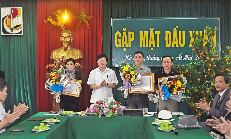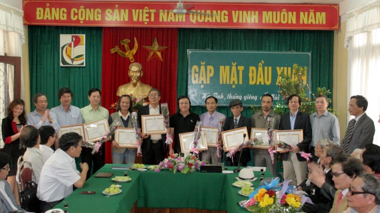 Sáng 26/2, Hội Liên hiệp Văn học Nghệ thuật Hà Tĩnh đã tổ chức buổi gặp mặt đầu xuân Ất Mùi chúc thọ các hội viên cao tuổi, khen thưởng các cán bộ hội viên đạt thành tích cao năm 2014 và trao thẻ cho các hội viên mới.