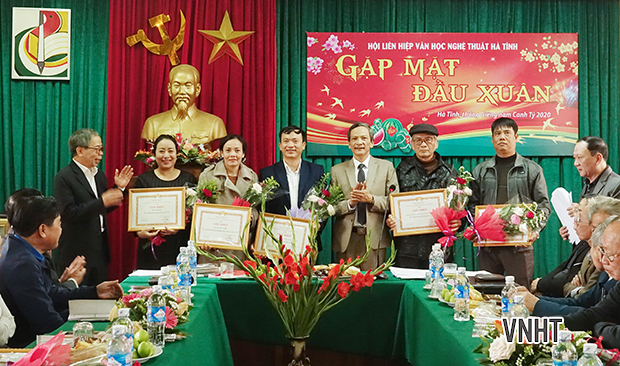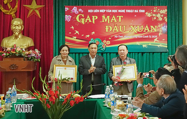 Tại cuộc gặp mặt đầy ý nghĩa này, sau khi tổ chức trao tặng hoa cho các hội viên thượng thọ, Ban tổ chức đã tiến hành trao Bằng khen của UBND tỉnh, của Liên hiệp các Hội VHNT Việt Nam và Giấy khen của Hội cho các tập thể, cá nhân có thành tích xuất sắc trong công tác và lao động sáng tạo năm 2019.