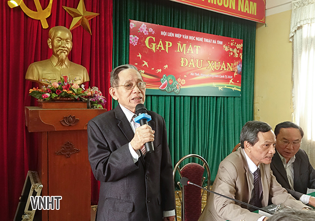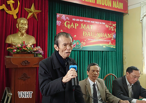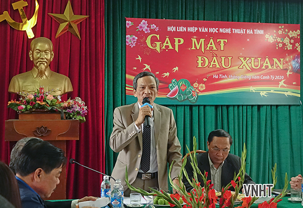 Nhà văn Phan Trung Hiếu - Chủ tịch Hội trong bài diễn văn chúc mừng cho biết hiện nay, có tới 60 hội viên trên 70 tuổi, chiếm tỷ lệ gần 1/4 tổng số hội viên của Hội. Nhiều bác tuổi đã cao, sức khỏe giảm sút nhưng vẫn say sưa trong nghiên cứu, sáng tác và tiếp tục có những cống hiến xứng đáng vào thành tích chung của Hội. Trong năm 2020 vừa qua, được sự quan tâm của lãnh đạo tỉnh và sự nỗ lực của toàn thể cán bộ hội viên, hoạt động trên lĩnh vực sáng tạo VHNT tỉnh nhà đã có nhiều khởi sắc, giành được nhiều thắng lợi, Hội có thêm 4 hội viên được kết nạp vào các Hội chuyên ngành TW (2 nhà văn, 1 họa sĩ, 1 Nghệ sĩ nhiếp ảnh), nhiều người được công nhận danh hiệu Nghệ nhân Nhân dân, Nghệ sĩ ưu tú, Nghệ nhân ưu tú, một số hội viên giành được giải cao trong các kỳ thi, liên hoan, triển lãm, giải thưởng của Liên hiệp các Hội VHNT Việt Nam và các Hội chuyên ngành TW…..; Ban chấp hành trong phiên họp đầu năm đã quyết nghị kết nạp thêm 07 hội viên vào các chuyên ngành thơ, mỹ thuật, nhiếp ảnh, văn nghệ dân gian...