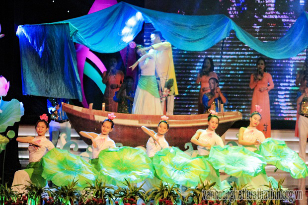 Chương trình được truyền hình trực tiếp từ 2 điểm cầu Nghệ An - Hà Tĩnh, trên sóng Đài PT-TH 2 tỉnh và Đài truyền hình Kỹ thuật số VTC gồm 3 phần: Phần 1 với chủ đề “Một giải Lam - Hồng” với các tiết mục hát múa dân ca ví, giặm: Hồn quê xứ Nghệ, Núi Hồng sông Lam, Thương về xứ Nghệ, Trở về xứ Nghệ, Từ Làng Sen. Phần 2 có chủ đề “Màu cờ năm ấy” với các tác phẩm: Tiếng hò trên đất Nghệ An, Người con gái sông La, Chào em cô gái Lam Hồng. Phần cuối chương trình với chủ đề “Bên nhau trên đường lớn” với các tác phẩm: Người đi xây hồ Kẻ Gỗ, Mai em về Hà Tĩnh, Nghệ Tĩnh mình đây, Khúc hát sông quê, tiết mục dân ca Lời chào giã bạn…Tại chương trình, các khán giả đã được thưởng thức các tiết mục đặc sắc, được dàn dựng kĩ lưỡng, công phu từ 2 đầu cầu do các giọng ca NSƯT Tố Nga, Đăng Thuật, Bùi Lê Mận, Vũ Thắng Lợi, Thụy Miên, Đinh Trang, Phương Thanh, Trần Trang, Bích Ngọc…. thể hiện.